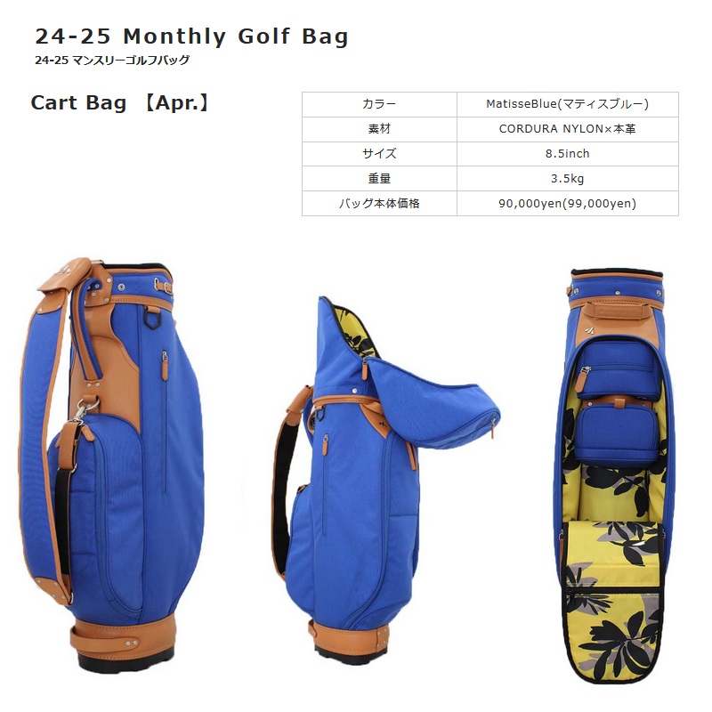 トップ > キャディバッグ > ロッディオ 24-25 マンスリーゴルフバッグ Cart Bag 【Apr.】 マティスブルー キャディバッグ 8.5型 3.5kg Monthly Golf Bag 4月