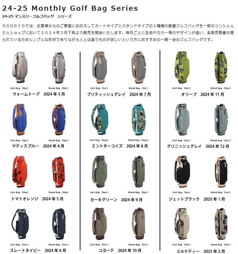 ロッディオ 24-25 マンスリーゴルフバッグ Cart Bag 【Apr.】 マティスブルー キャディバッグ 8.5型 3.5kg Monthly Golf Bag 4月