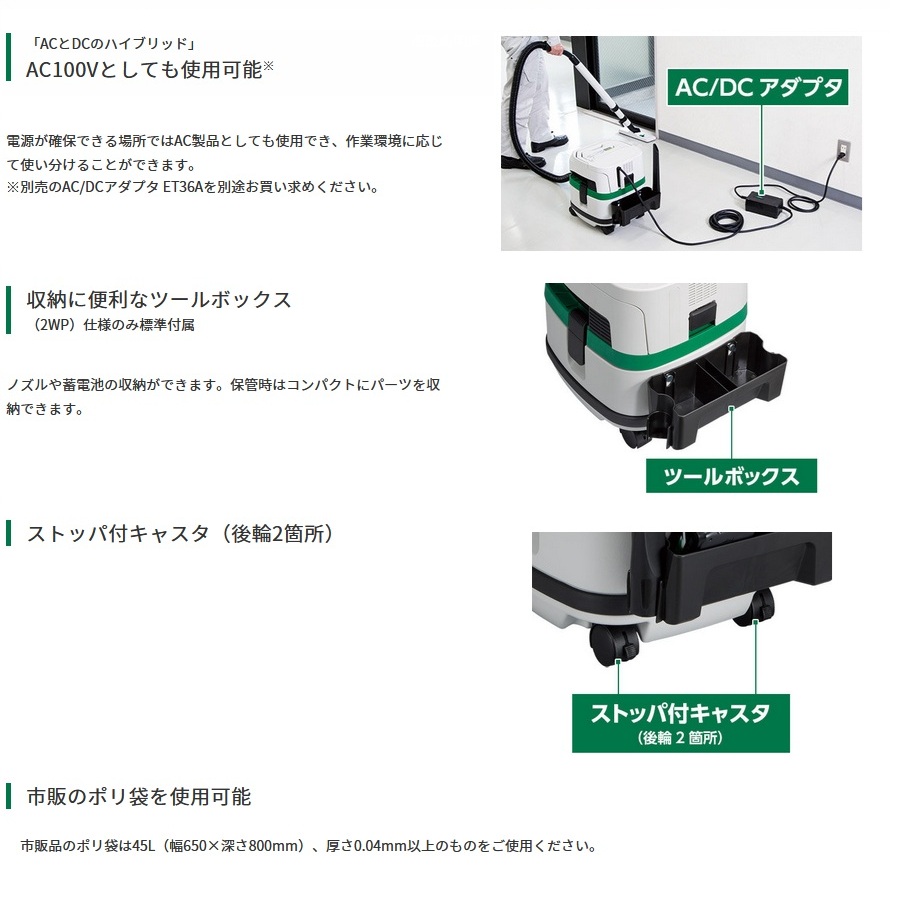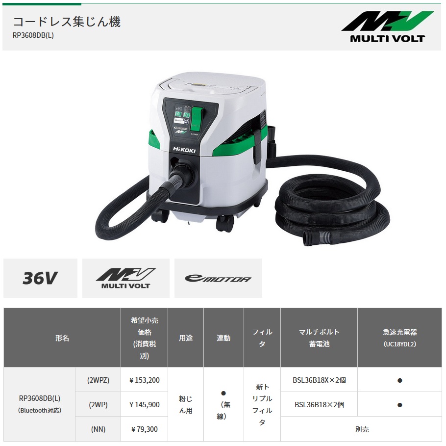 トップ > DIY用具 > ハイコーキ コードレス集じん機 RP3608DB(L)(2WP) DIY用具 36V マルチボルト 電池2個・充電器付
