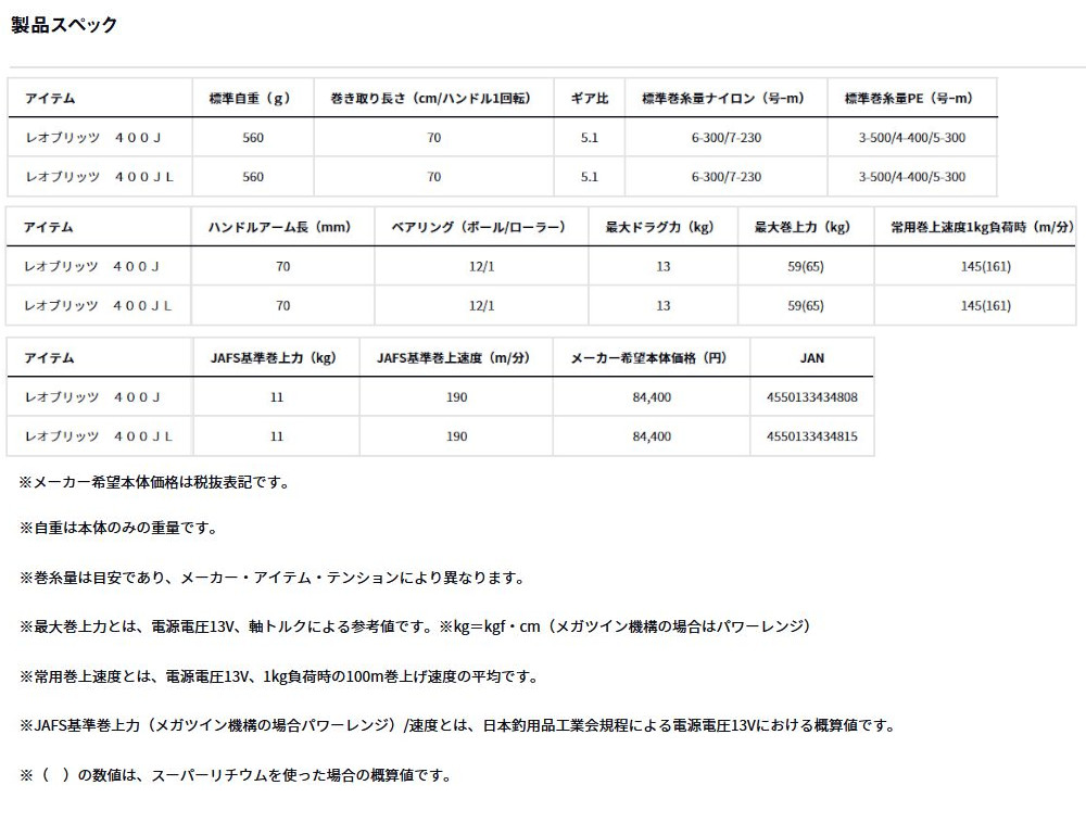 ダイワ 25レオブリッツ 400J 釣り具 右ハンドル LEOBRITZ 電動リール