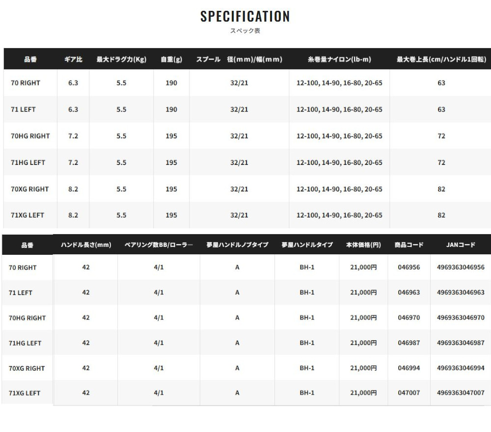 リール SLX 046970 5RL743A30 4969363046970 SLX70HG SHIMANO