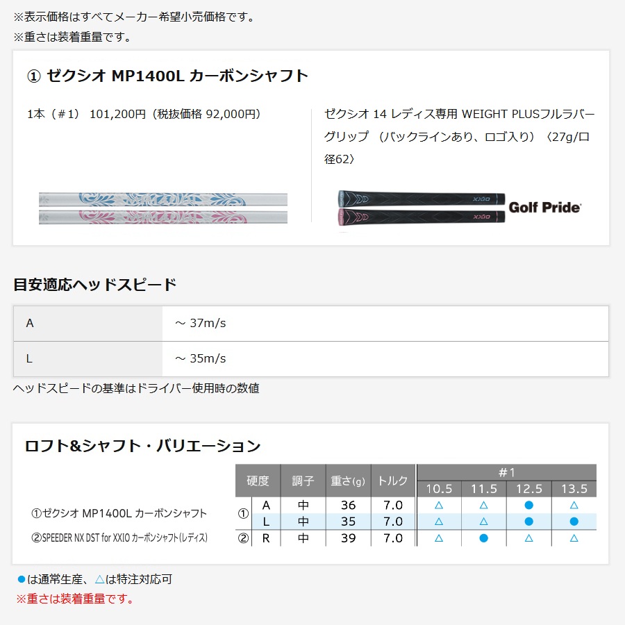 トップ > レディース > 女性用 ダンロップ 2026年 XXIO14 ゼクシオ14 ブルー ドライバー 純正カーボン XXIO MP1400L 日本仕様 レディース